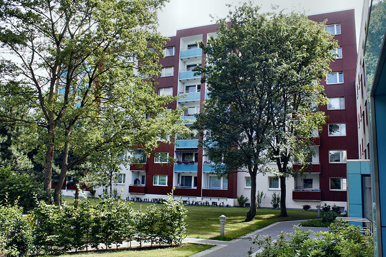 Die Wohnanlage befindet sich in der Nähe des Schleemer Bach mit vielen Grünflächen. Zum Einkaufszentrum Jenfeld sind es ca. 10 min Fußweg. Dort finden Sie eine Vielzahl an Einkaufsmöglichkeiten. Mit Bussen hat man eine gute Anbindung zur Bahnstation Wandsbek Markt (U1 + diverse Buslinien in alle Richtungen). Zur Autobahn Auffahrt Jenfeld A 24 sind es ca. 2 km. Kindergärten, Schulen, Sportanlagen, Ärzte, das AK Wandsbek und das Krankenhaus Wilhelmstift liegen in der näheren Umgebung.
